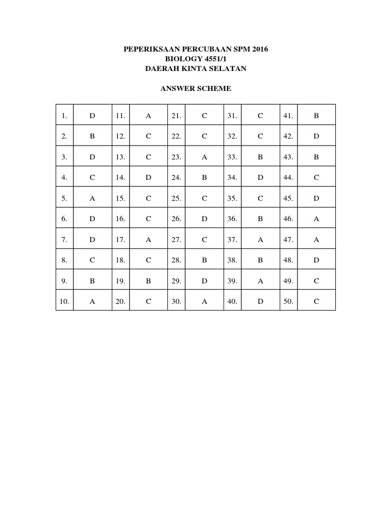 Answer Scheme Biology P1 Trial Spm 2016 Ppdks
